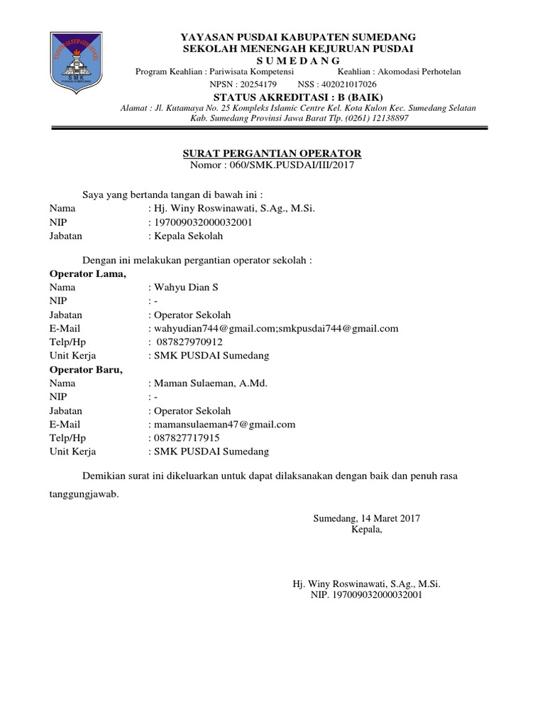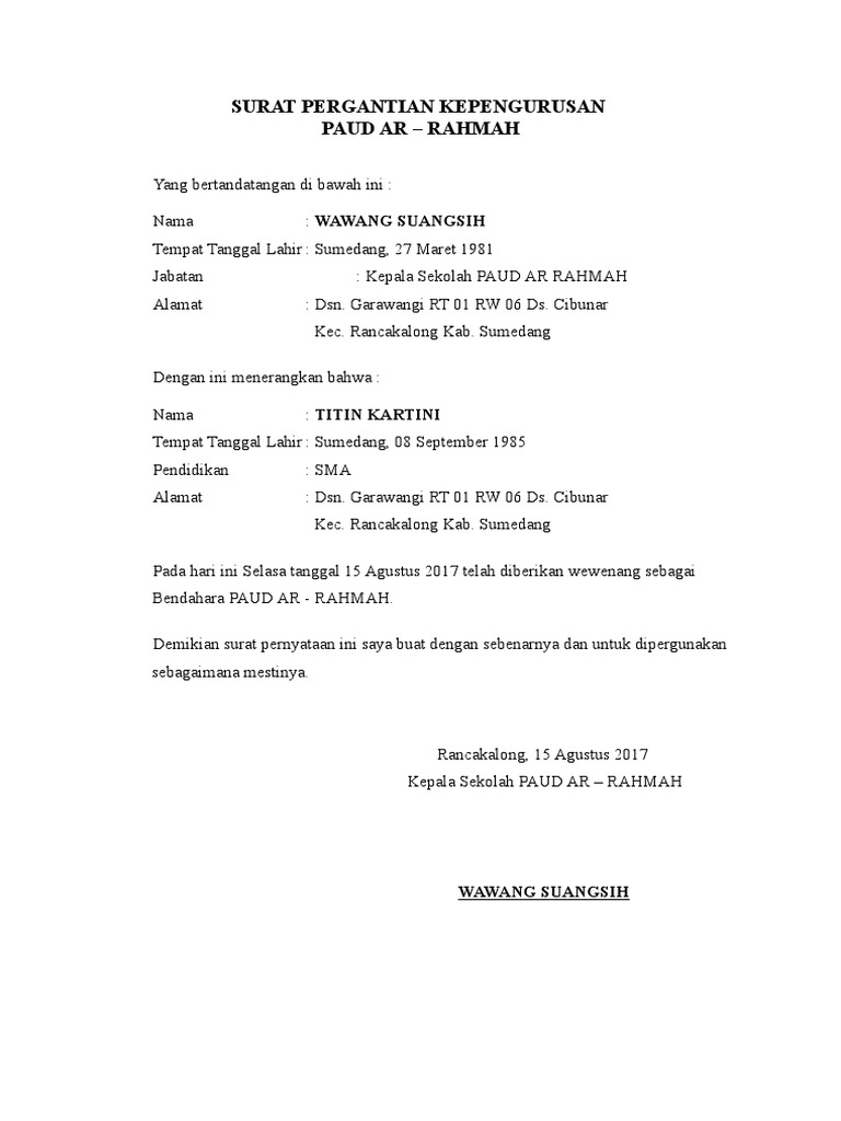 Demikianlah pembahasan yang dapat kami sampaikan mengenai contoh surat pemberitahuan pergantian kepala sekolah ke dinas. Contoh surat keterangan kesalahan penulisan ijazah terbaru. Contoh surat keputusan pergantian pengurus yayasan in addition, it will feature a picture of a kind that may be observed in the gallery of contoh surat keputusan pergantian pengurus yayasan. Download contoh surat pergantian rekening bank dari kepala sekolah lama ke kepala sekolah baru. Permohonan penambahan specimen tanda tangan docx document.